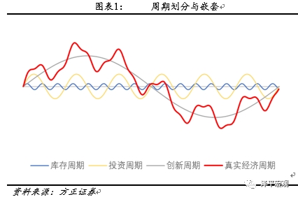从周期理论的视角出发,现实中的经济运行趋势由多股商业周期力量叠加而成:60年左右的创新周期、10年左右的设备投资周期和3-4年左右的存货周期等,这三种周期之间也存在着相互嵌套的关系。其中库存周期作为判断经济短期运行状态的一个关键变量,被广泛运用经济预测中。