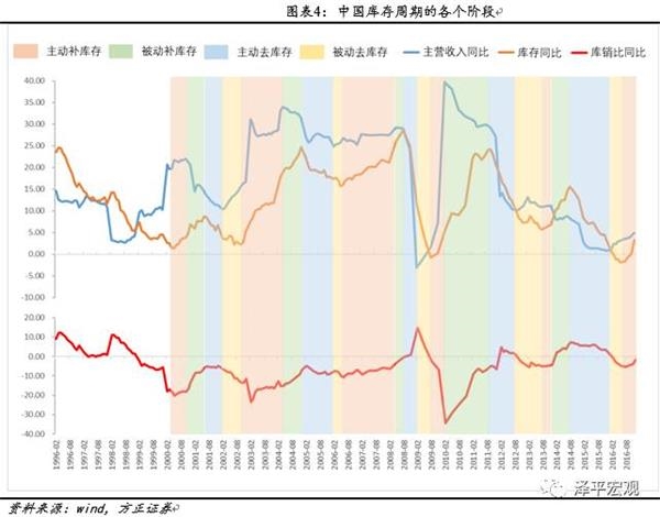 依据这一标准,我们大体上可以将2000年以来的中国经济划分为五个库存周期,分别是2000.05-2002.10;2002.11-2006.05;2006.06-2009.08;2009.09-2013.08;2013.09-2016.06,目前中国正处在第六个库存周期的主动补库存阶段。