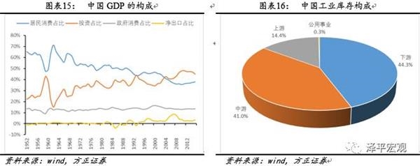 总结过去五轮库存驱动因素可以发现,工业部门的扩张对库存整体水平有重要影响。其中,中上游企业的库存调整是影响中国库存周期动态的主要因素。相对而言,终端消费需求对中国库存周期变化的影响较弱。这样一种特征也是与中国作为世界最大生产国的地位是相符的。