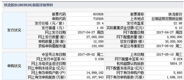 根据交易所消息,上海保隆汽车科技股份有限公司首次公开发行股票网上定价发行有效申购户数为 14,767,871户,有效申购股数为 95,598,997,000 股,配号总数为 95,598,997 个,配号起始号码为 100,000,000,000,截止号为 100,095,598,996,网上发行初步中签率为0.01223862%。