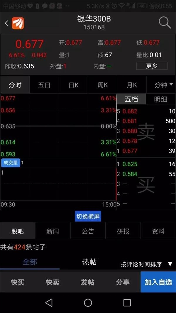 深100B的情况也相差无几。同样是在交易的最后一分钟,深100B以1.421元的价格成交了1手,仅此一手将深100B拉涨9.06%,该基金全天总成交金额142元。此外,银华300B大涨6.61%的情况也如出一辙,全天只成交了一手,成交金额67元。