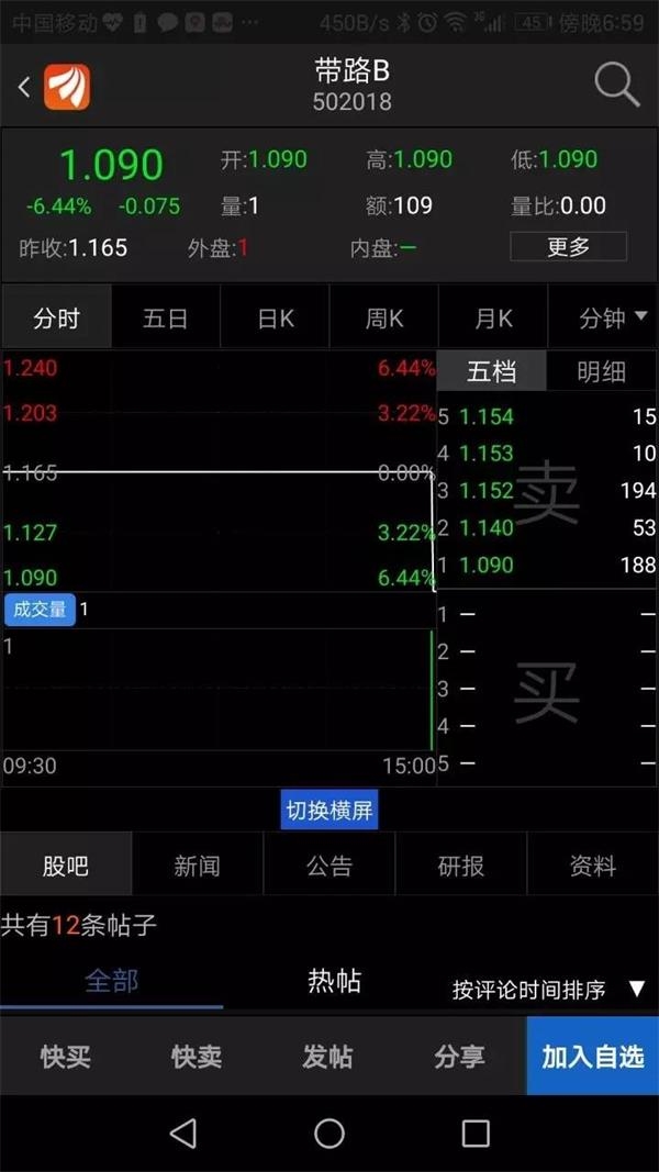 只要一手的资金量,能让基金大涨,也能让基金大跌。今日带路B(502018)在下午2点57分成交了唯一一笔交易,成交价格为0.075元,价格跌幅达6.44%,全天成交金额109元。