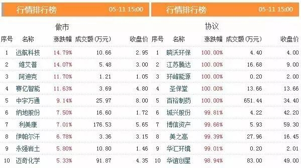 从新三板股票的市场表现来看,今天有5只股票涨幅超过100%,共有55只个股涨幅超过30%。