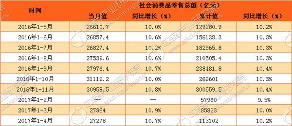 2017年1-4月中国社会消费品零售情况分析:零售额增长10.7%(附图表)