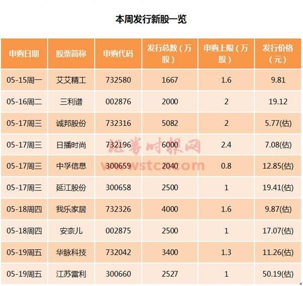 10只。承接惯有节奏,本周共安排了10只新股上市,深沪两市各有5只。