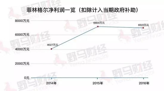2016年,菲林格尔实现营业收入6.95亿元,同比小幅下降1.97%;实现净利润0.78亿元,同比小幅上升。不过如果扣除计入当期损益的政府补助,净利润也出现了下降。