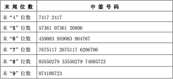 凡参与网上定价发行申购中孚信息股份有限公司首次公开发行A股股票的投资者持有的申购配号尾数与上述号码相同的,则为中签号码。中签号码共有36720个,每个中签号码只能认购500股中孚信息股份有限公司A股股票。