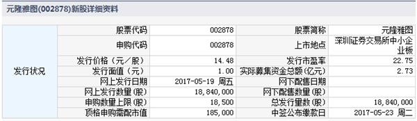 元隆雅图5月19日发行申购上限1.85万股