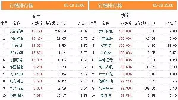 从新三板股票的市场表现来看,今天有5只股票涨幅超过100%,共有44只个股涨幅超过30%。