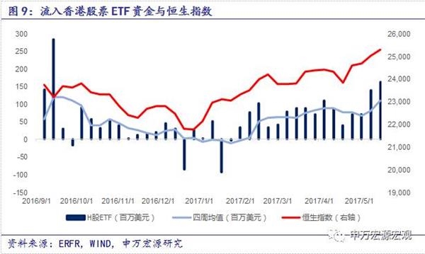 5月17日当周香港股票ETF延续上周的资金流入行情,股票ETF呈现1.62亿美元净流入,上周为1.39亿美元净流入。自2月以来H股ETF一直呈现资金净流入状态。
