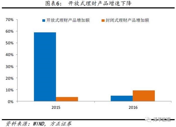 2、从理财的存续情况来看,2016年高增但放缓,同业占比迅猛增加至20.61%,较2015年上升7.84个百分点。