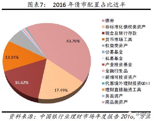 1)从配置时间上看,债券配置主要是上半年占比大幅增加。2016年末,理财配置债券较2015年底提高14个百分点,超2016年6月末3个百分点,2016年下半年以来增速放慢是央行锁短放长去杠杆、四季度起表外理财纳入MPA考核、中美加息预期、债市调整等因素所致。