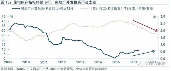 莫为调控遮望眼,房地产销售增速虽然下行,但地产开发投资本轮恢复的韧性很强。对于房地产中周期趋势,其逻辑核心还是在于库存水平与房价预期:2015年年初以来,我们监控的商品住宅广义库存指标开始掉头下行,而滞后一年后,房地产开发投资增速见底回升,并体现出很强的韧性,4月份累计增速已经达到了9.3%。