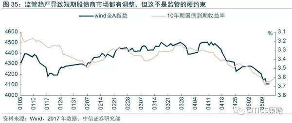 先来看利率上行的节奏;我们前面分析过金融监管挤压渠道、限制套利、去化杠杆:监管的节奏基本决定了未来利率的波动节奏。那么要理解监管的节奏和约束必须理解以下几个层次的内涵: