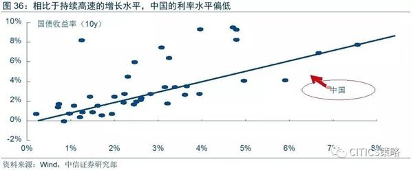 看得长一点,长期经济增长放缓对应的确实是长期利率逐步下行,全球都是如此。不过换一个角度来看,如果对比经济增速和利率水平,那中国相比其他高增速的国家,利率水平明显偏低(主要原因是通胀偏低)。即便是阶段性上行,与长期经济增长放缓的大趋势也并不矛盾。