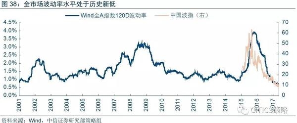 而至少今年截至目前,指数的振幅恰恰就处于历史最低水平。2015年年中A股大幅调整以来,整个市场的波动率水平趋于下行。这一方面源于其后市场被动和主动去杠杆;另一方面是因为金融风险防范的重要性上升,监管上对市场波动更敏感。