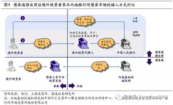 在债券通推出之前,境外投资者参与内地银行间债市,须委托具备国际结算业务能力的银行间债券市场结算代理人完成备案、开户等手续,开户时间较长,且境外投资者需对内地债券市场相关法规制度和市场环境有全面的了解。而在债券通机制下,无需到内地相关机构办理开户事宜,可直接依靠内地与香港的基础设施互联和多级托管来“一点接入”内地银行间债券市场。