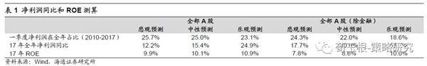 预计17年盈利增长回到两位数。截至2017Q1,全部A股的净利润增速达到19.8%,相对于2016Q4的5.4%大幅改善。根据历史上一季度净利润在全年净利润中的占比,我们将2010年至今的7年间占比最高的25.7%定义为悲观预测,7年间占比最低的23.1%定义为乐观预测,由此可以计算出全部A股悲观/中性/乐观情景下17年全年归母净利润同比的大小,分别为12.2%/15.4%/24.9%。我们根据分析师对各行业板块盈利数据的预测,自下而上汇总测算全年净利润同比增速的情况,预计17年全年净利润同比增长有望达到14%,ROE则有望达到10%。盈利的回升源于两个力量,改革转型带来盈利周期的复苏以及行业结构的变化。第一,改革转型带来盈利周期的复苏。宏观经济增速进入平稳期,改革推动周期性行业上市公司集中度提升,盈利能力提高,消费升级和科技创新持续推进,盈利稳定高增长。第二,行业结构的变化。高ROE、盈利稳定且高增长的消费、科技类行业占比在稳步提升。且行业内盈利能力更强的龙头公司的市占率在提高,详见《盈利两位数增长下的股市-20170509》、《盈利分析系列1-4》。