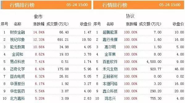昨日共有984只股票发生交易,成交金额10.48亿元,做市转让成交3.04亿元,协议转让成交7.44亿元,成交数量19540.03万股。