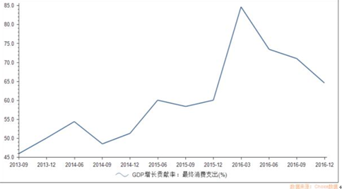 Choice数据显示,2016年底国内最终消费支出对GDP贡献率达到64.6%,远超投资和出口,消费结构也逐渐从物质消费转向精神服务消费;其次,随着美国加息,流动性慢慢收紧,整个市场风险偏好走低。在确定性比较高的行业或是细分行业的龙头公司中,泛消费领域未来表现可期。