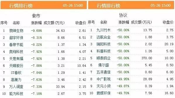 昨日共有992只股票发生交易,成交金额9.43亿元,做市转让成交3.72亿元,协议转让成交5.73亿元,成交数量20991.79万股。