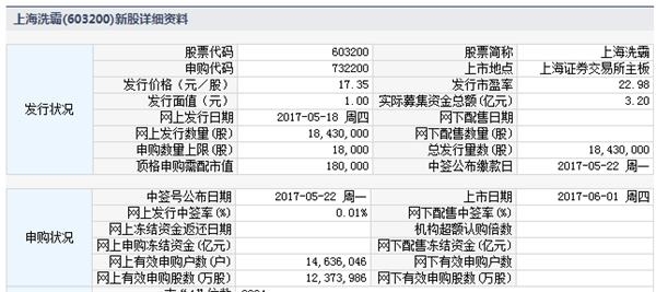 根据交易所公告,上海洗霸科技股份有限公司于2017年6月1日起在上海证券交易所主板上市交易。