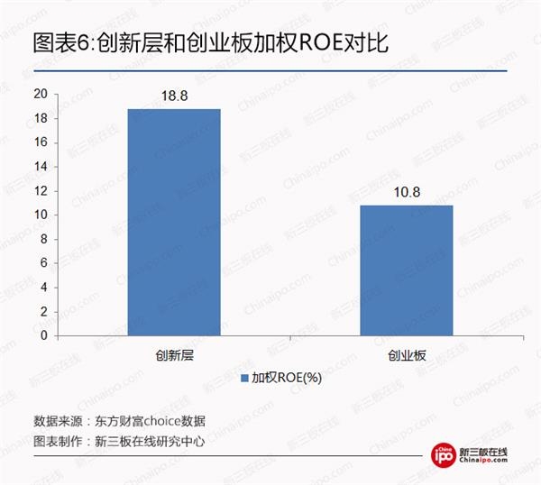新三板在线研究中心统计发现,此轮创新层调整后,相关公司2016年净资产收益率(加权)平均是18.8%,而创业板相关数据仅为10.8%。显然,创新层公司的净资产收益率高于创业板公司,也具有更高的增长潜力。
