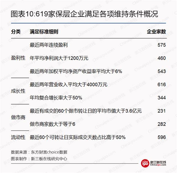 当然,大多数公司不只是满足其中一天。新三板在线研究中心根据东方财富choice数据统计发现,同时满足两个分层标准条件的保层公司多达582家。