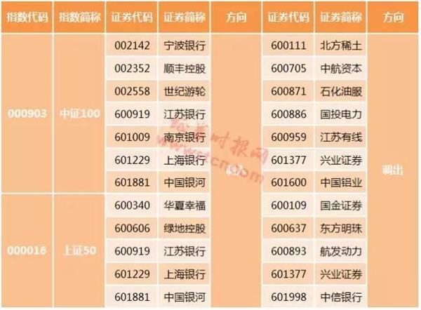 具体来看,中证100中,宁波银行、顺丰控股、世纪游轮、江苏银行、南京银行、上海银行、中国银河等7股被调入;上证50中,华夏幸福、绿地控股、江苏银行、上海银行、中国银河等5股被调入。其中,江苏银行、上海银行、中国银河等3股分别被中证100和上证50同时纳入样本股。值得注意的是,指数样本股的调整,这意味着相关被动型指数基金的部分资金重新布局:买入新纳入指数的个股,卖出被剔除的成分股。因为,按照指数基金的交易要求,为减少跟踪误差,基金的大部分资产都要按照基准指数的成分和权重进行配置。