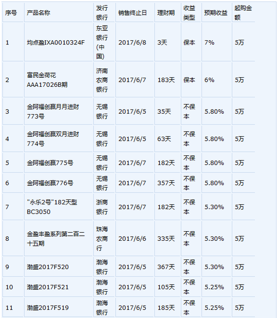 6月2日在售高收益银行理财产品一览