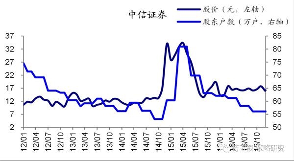 从2012年至今,很多大盘蓝筹股都已经经历过大幅上涨。从股东户数的角度可以观察到一个有趣现象,在大盘股上涨前夕,股东数往往已经大幅降低,筹码相对集中。类似情况在14年下半年、16年都曾出现,展望2017,类似的情形是否会再次上演?