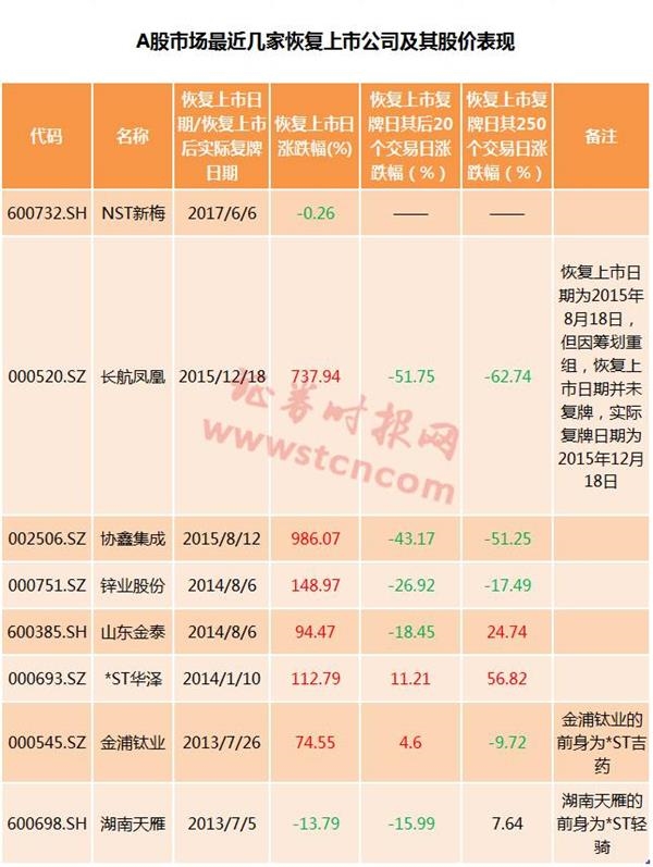 统计数据显示,近几年暂停上市公司恢复上市首日股价表现一般都很好,如2015年12月18日的长航凤凰恢复上市后首个交易日股价暴涨737.94%,2015年8月12日协鑫集成恢复上市首日经权息调整后的涨幅更高达986.07%。可能是“复习”上述历史表现,很多投资者也在昨日大举抢筹NST新梅,以为也能依葫芦画瓢分得一杯羹。