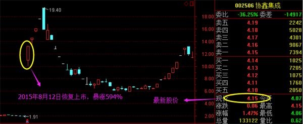 协鑫集成(002506):2015年8月12日恢复上市暴涨594%。