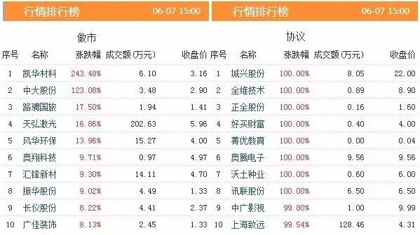 从新三板股票的市场表现来看,今天有10只股票涨幅超过100%,共有62只个股涨幅超过30%。