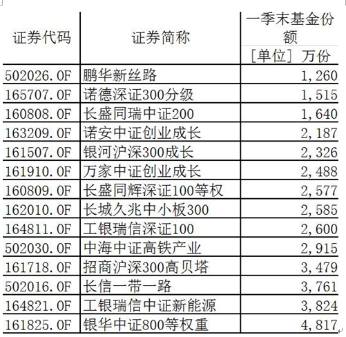那么,哪些分级基金基础份额和子份额合计低于5000万份?公开资料显示,根据一季报数据,大约有14只。
