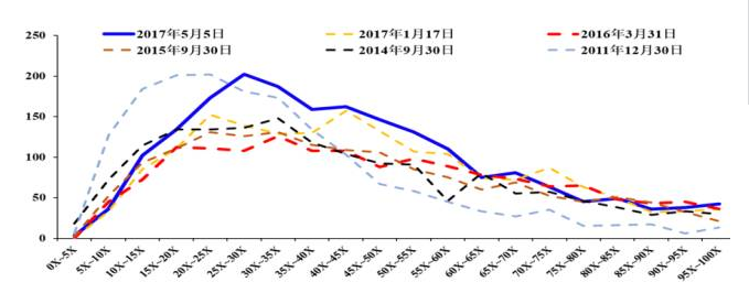 同历史相比,中小盘股票见底时估值大多在20-30X,在每一轮牛市中都率先启动。目前,进入10-30X的中小市值公司越来越多。寻找估值被消化、在中小盘指数创新低过程中提前见底的股票可能性越来越大,中下盘股票左侧投资机会逐渐显现。