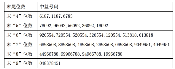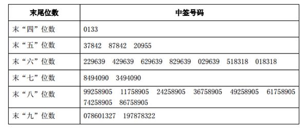 凡参与本次网上定价发行的投资者持有的申购配号尾数与上述号码相同的,则为中签号码。中签号码共有45,738个,每个中签号码只能认购1,000 股浙江诚邦园林股份有限公司A股股票。