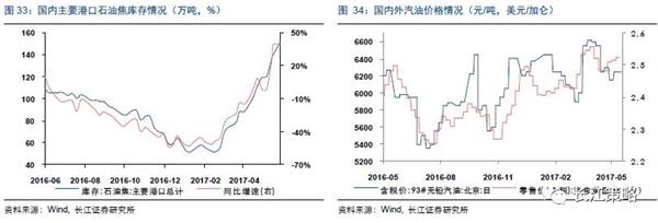原油库存:全美原油和石油产品库存量小幅回升。上周全美原油和石油产品(包括战略石油储备)库存量合计达到20.31亿桶,较去年同期的同比增速为-0.06%。此外同期全美商业原油库存量达513207万桶,较前一周的环比增速0.65%,较去年同期同比增速为2.26%。