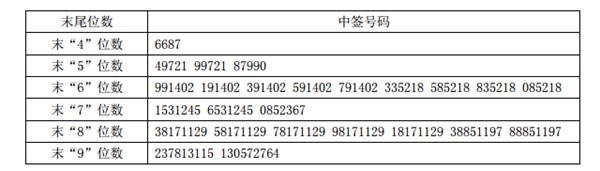 凡参与网上定价发行申购的投资者持有的申购配号尾数与上述号码相同的,则为中签号码。中签号码共有39216个,每个中签号码可认购500股深圳市沃特新材料股份有限公司A股股票。