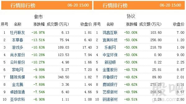 【跌幅榜单】