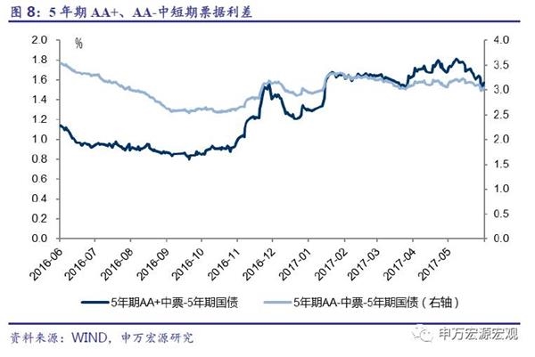 信用利差收窄。1年期、3年期、5年期AAA票据信用利差分别变化+5.9、-9.6、+0.1个基点,至1.02%、1.05%、1.18%;1年期、3年期、5年期AA+票据信用利差分别变化-1.1、-14.6、-2.9个基点,至1.28%、1.33%、1.58%。