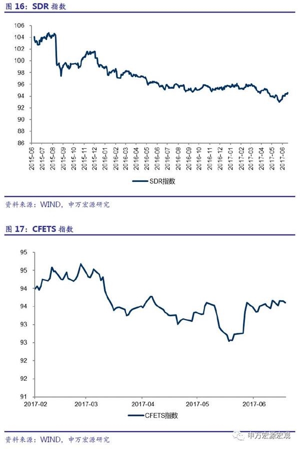 人民币贬值,美元指数下降。截至6月24日,美元兑人民币即期汇率报收于6.8387,较前一周贬值0.36%;美元兑人民币中间价收于6.8238,较前一周贬值0.36%;离岸美元兑人民币收于6.8366,较前一周贬值0.33%。CNY日均成交量259亿美元,较前一周下降20亿美元。上周美元指数上升0.2%至97.30。我们根据人民币兑一篮子货币中间价估算的SDR货币篮子汇率指数和CFETS指数,截至6月23日,二者分别为94.29和93.61.SDR指数和CFETS指数较前一周分别下降0.25%和0.06%。