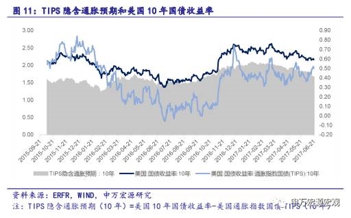 本周美国10年期国债收益率在上升了3个bp后回落,与上周持平,收于2.16%。TIPS隐含通胀预期经历小幅上升,收于0.5%。