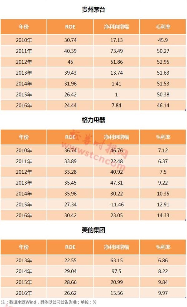 可以看出,尽管已经多年高速增长了,但是这些佼佼者们成长的速度却没有放缓的迹象,净资产收益率(ROE)一直保持在较高水平。因此,尽管股价持续往上攀升,但是随着企业保持着优良增长速度,相关个股的市盈率却长时间保持在低位水平。