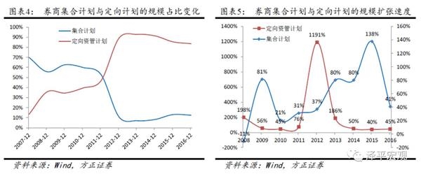 2012年10月,对券商资管业务具有里程碑意义的监管政策相继出台,形成了“一法两规”,即《证券公司客户资产管理业务管理办法》、《证券公司集合资产管理业务实施细则》、《证券公司集合资产管理业务实施细则》的基本体系,通过将集合资管计划的行政审批制改为发行制度,提高了效率,有利于券商根据客户需求及市场情况,灵活设计产品并及时推出;拓展投资范围,在股票、债券、基金、股指期货等证券品种的基础上,增加非上市公司股权、债权资产等;取消小集合、定向的投资比例限制,取消了集合资管计划的最低规模限制。