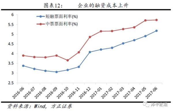 另一方面,去通道化以及清理资金池会引发债券赎回,推高债券发行利率,成本上升导致大量的信用债推迟发行,继3月和4月大面积的信用债推迟或取消发行后,5月中债登债券发行1.42万亿元,较4月发行下降352亿元,发行量同比也下降,是自去年11月连续第7个月同比出现下滑。上清所5月末债券发行1.45万亿元,环比减少2029亿元。企业融资成本的上升才是监管加强会后对实体经济冲击最大的地方,预计随着下半年PPI的回落,企业实际资金成本将上升到更高的水平,实体经济相关上下游会面临一定的挑战,特别是对部分流动性差的行业,如房地产、钢铁等,资金来源收紧后去产能的压力更大。
