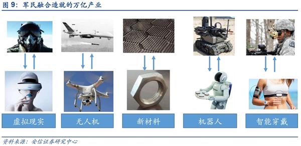 军民融合通过军转民获取社会资本,优化产研结构,盘活军工企业优质资产,扩大军事科研使用成果,获取社会经济效益,促进军工企业创新发展和可持续发展;同时通过民参军,为军事工业注入活水,提升军工竞争力,促进民企获得更多社会效益。深度军民融合的最直接表现是一些成熟的军事领域制品会拓展成大体量的民用产业,激发经济活力。
