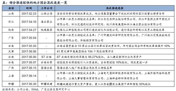 按照从中央到地方“自上而下”式的混改扩散路径,在央企示范效应带动下地方层面的国企混改案例也正在推广:
