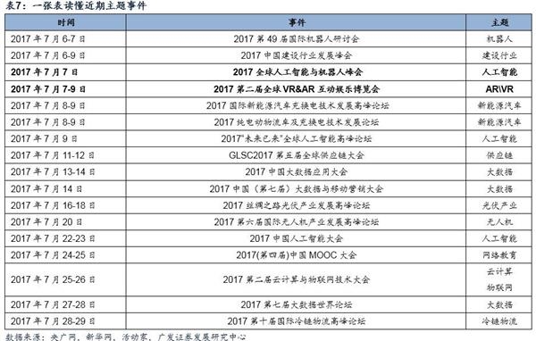 本周重要主题事件包括:2017年7月7日2017全球人工智能与机器人峰会(人工智能)和2017年7月7-9日2017第二届全球VR/AR互动娱乐博览会(VR/AR)等。