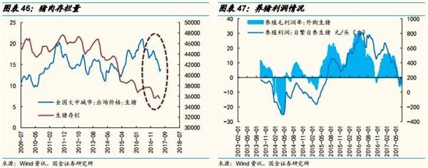 通胀链:猪肉和蔬菜价格6月开始价格有所企稳。年初养猪毛利一直维持高位,最近两个月快速下行,目前已经进入亏损区域。相比而言,鸡肉价格周期较短,从去年9月开始养鸡行业开始亏损,今年4月至今父母代鸡存栏量连续下滑,目前虽然价格还未开始上涨,但投资者预期较强。